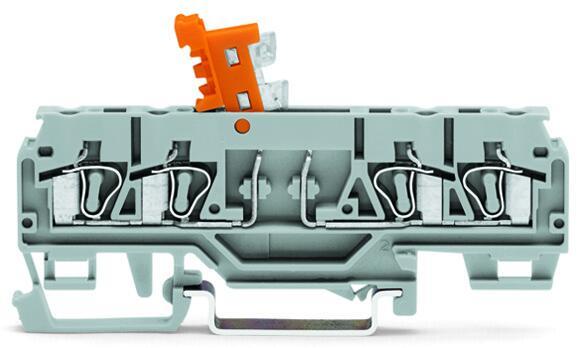 Test disconnect terminal block for 4 conductors with pivoting knife disconnect with test socket orange disconnect lever for DIN rail 35 x 15 and 35 x 75 25 mm² CAGE CLAMP 250 mm² gray