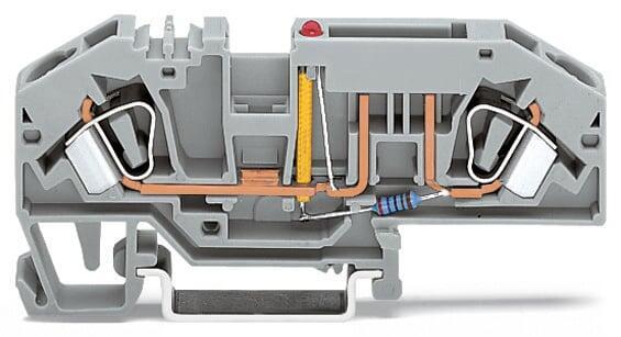 2-conductor fused terminal block for automotive blade fuses with test option with LED fuse blown indication 24 V for DIN rail 35 x 15 and 35 x 75 6 mm² CAGE CLAMP 600 mm² gray