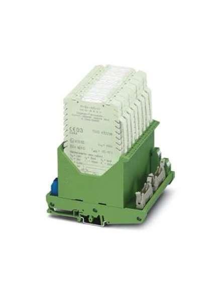 Ex i motherboard to accept 8 x PI-Ex i repeater power supplies, input signal conditioners, etc. (PI-EX-), FLK pin strips for connection to Siemens S7-300 analog in cards using system cables, assembly on NS 32, or NS 35/7.5.