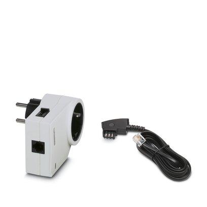 Socket attachment plug with surge protection for the power supply and signal connection of an end device with analog or digital telecommunications interface (VDSL up to 50 Mbps, on short paths (< 300 m) up to 80 Mbps). Cable is included.
