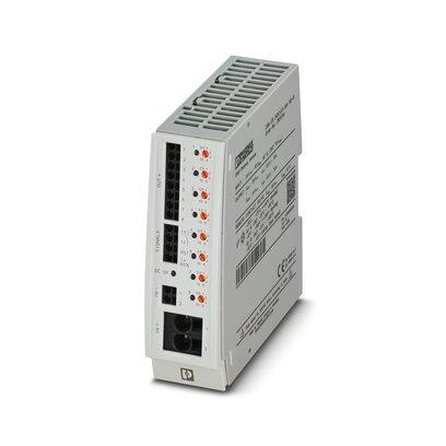 Multi-channel, electronic device circuit breaker with active current limitation for protecting eight loads at 24 V DC in the event of overload and short circuit. With nominal current assistant and electronic locking of the set nominal currents.