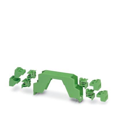 DIN rail housing, Set comprised of upper housing part, 4 PCB headers (3-pos.), and 4 PCB terminal blocks with screw connection (3-pos.), width: 17.6 mm, height: 99 mm, depth: 45.85 mm, color: green (similar RAL 6021)
