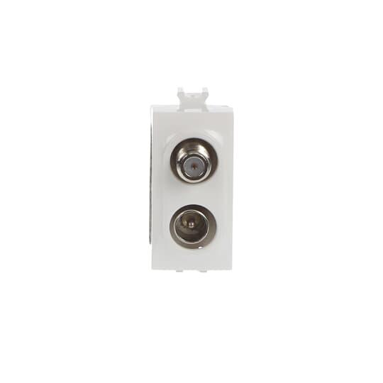 Double demixed TV/SAT coaxial socket, direct, male IEC connector ø 9.5 mm and female F connector TV Socket Outlets -TV/SAT Coaxial Socket Male IEC Connector White - Chiara
