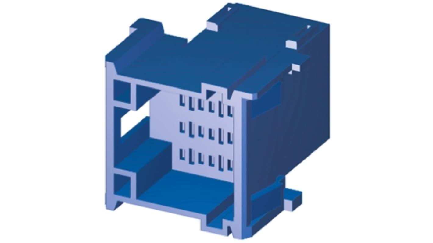 Housing for Male Terminals, Wire-to-Wire, 12 Position, .197 in [5 mm] Centerline, Blue, Signal, Panel Mount, -40 – 248 °F [-40 – 120 °C], Hybrid; Alias: TAB HSG 2.8MM 12POS.