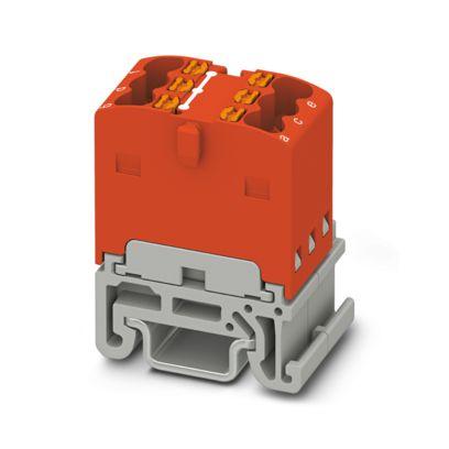 Distribution block, bridged internally, nom. voltage: 500 V, nominal current: 17.5 A, number of connections: 6, connection method: Push-in connection, cross section: 0.14 mm2 - 2.5 mm2, mounting type: NS 15, color: red