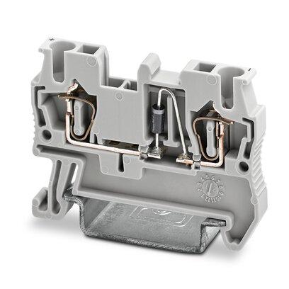 Component terminal block, with integrated diode, nom. voltage: 800 V, nominal current: 0.5 A, connection method: Spring-cage connection, Rated cross section: 1 mm2, cross section: 0.08 mm2 - 4 mm2, mounting: NS 35/7,5, NS 35/15, color: gray