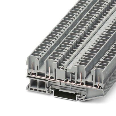 Feed-through terminal block, The max. load current must not be exceeded by the total current of all connected conductors.Current and voltage are determined by the plug used., nom. voltage: 500 V, nominal current: 24 A, number of connections: 4, connection method: Plug-in connection, 1 level, Rated cross section: 2.5 mm2, cross section: 0.08 mm2 - 4 mm2, mounting type: NS 35/7,5, NS 35/15, color: gray