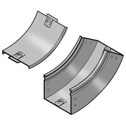 Upward bend at 45 complete with cover. Height 100 mm. Width 300 mm. Z finish Sendzimir galvanized steel.