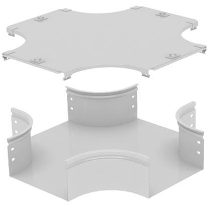 Flat cross complete with cover. Height 100 mm. Width 150 mm. Z finish Sendzimir galvanized steel.