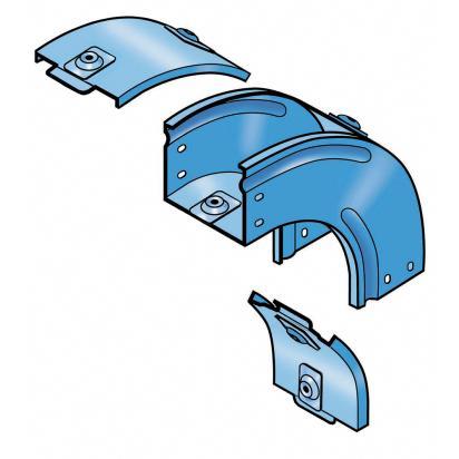 Vertical 90° bend with reverse plane, complete with cover. Height 75 mm. Width 100 mm. Finish G Steel enameled blue GammaP.