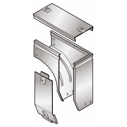 Left downward 90° bend with plane variation, complete with cover. Height 75 mm. Width 100 mm. Finish X Stainless steel AISI 304