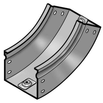 Upward curve at 45 base only. Height 75 mm. Width 200 mm. Finish Z Sendzimir galvanized steel.
