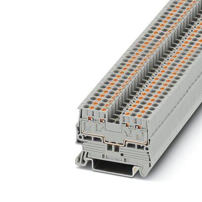 Feed-through terminal block, with widened marking grooves for TMT... Materials, nom. voltage: 500 V, nominal current: 17.5 A, number of connections: 4, connection method: Push-in connection, 1 level, Rated cross section: 2.5 mm2, cross section: 0.14 mm2 - 2.5 mm2, mounting type: NS 35/7,5, NS 35/15, color: gray