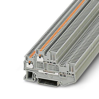Double-level terminal block, Current and voltage are determined by the plug used., nom. voltage: 500 V, nominal current: 16 A, connection method: Push-in / plug connection, 1st and 2nd level, Rated cross section: 1.5 mm2, cross section: 0.14 mm2 - 1.5 mm2, mounting type: NS 35/7,5, NS 35/15, color: gray