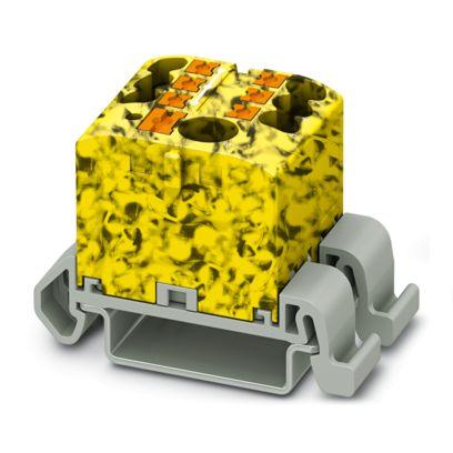 Distribution block, Block with horizontal alignment and integrated supply, nom. voltage: 690 V, nominal current: 24 A, number of connections: 7, connection method: Push-in connection, Load contact, cross section: 0.14 mm2 - 4 mm2, Push-in connection, Line contact, Rated cross section: 6 mm2, cross section: 0.5 mm2 - 10 mm2, mounting type: NS 35/7,5, NS 35/15, color: black/yellow