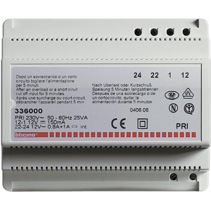 Power supply for 8-wire multi-family intercom systems 6 DIN modules. Power supply 230 Va.c. 5060 Hz. SELV device