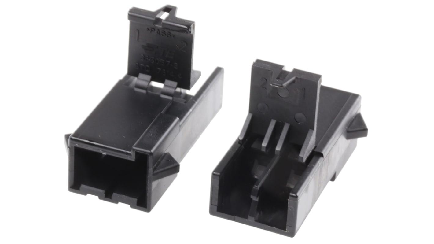 Housing for Male Terminals, Wire-to-Wire, 2 Position, .244 in [6.2 mm] Centerline, Black, Wire & Cable, Power, Timer Connector System; Alias: 0-0365057-3 2P TAB HSG BLK