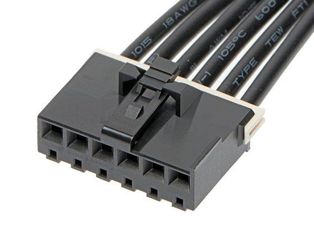 KK Plus 396-to-KK Plus 396 Off-the-Shelf (OTS) Cable Assembly, 3.96mm Pitch, Single Row, 75.00mm Length, 6 Circuits, Black