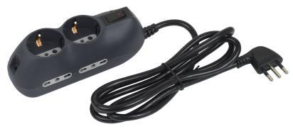 Multisocket with 4 2PT two-pin 1016 A sockets, 2 German P30 sockets, 1.5 m cable with 0.75 mm2 cross section, space-saving 10 A plug, gray circuit breaker