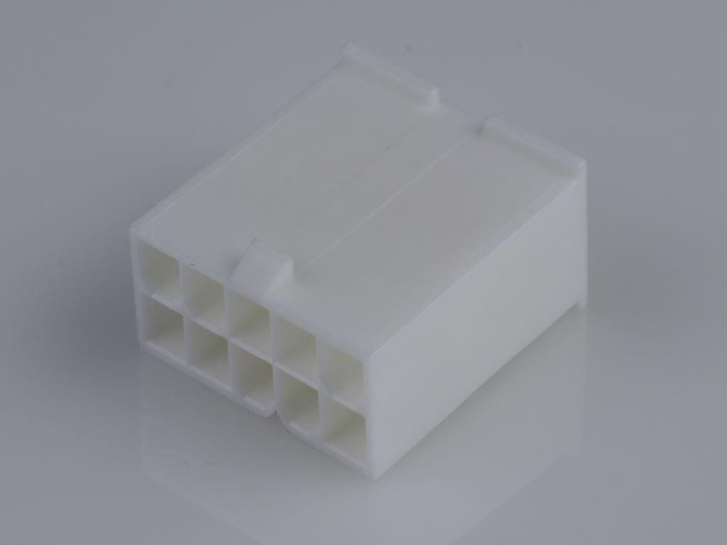 Mini-Fit Jr. Plug Housing, Dual Row, 10 Circuits, UL 94V-0, without Panel Mounting Ears, Natural