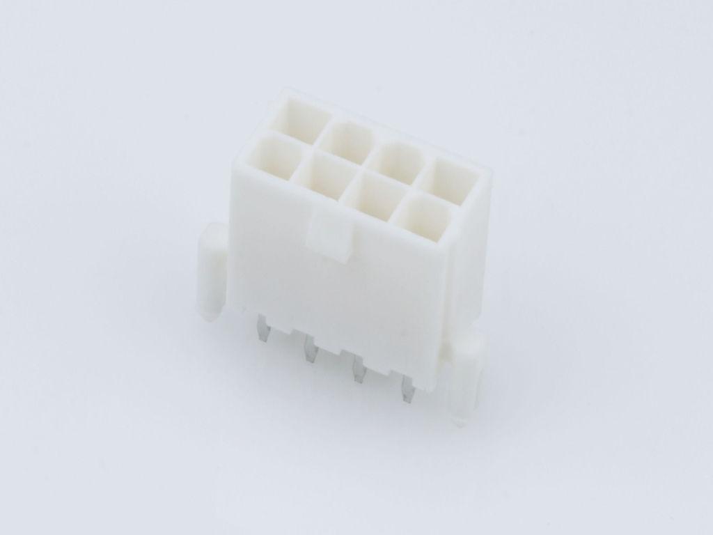 Mini-Fit Jr. Vertical Header, 4.20mm Pitch, Dual Row, 8 Circuits, with Snap-in Plastic Peg PCB Lock, Gold, Natural