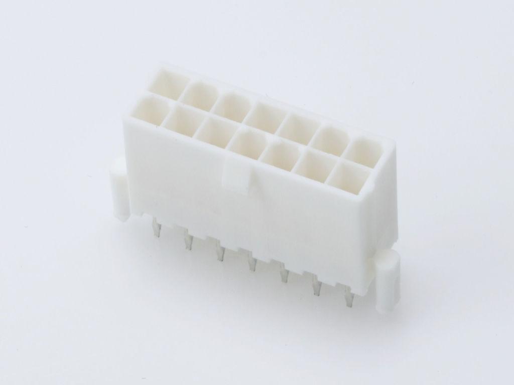 Mini-Fit Jr. Vertical Header, 4.20mm Pitch, Dual Row, 14 Circuits, with Snap-in Plastic Peg PCB Lock, Gold, Natural