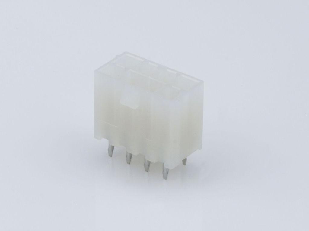 Mini-Fit Jr. Vertical Header, 4.20mm Pitch, Dual Row, 8 Circuits, without Snap-in Plastic Peg PCB Lock, Gold, Natural