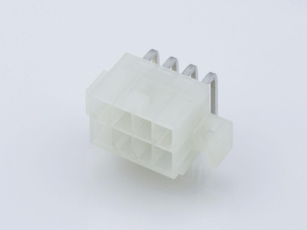 Mini-Fit Jr. Header, Dual Row, Right-Angle, with PCB Mounting Flange, 8 Circuits, PA Polyamide Nylon 6/6 94V-2, Tin (Sn) Plating