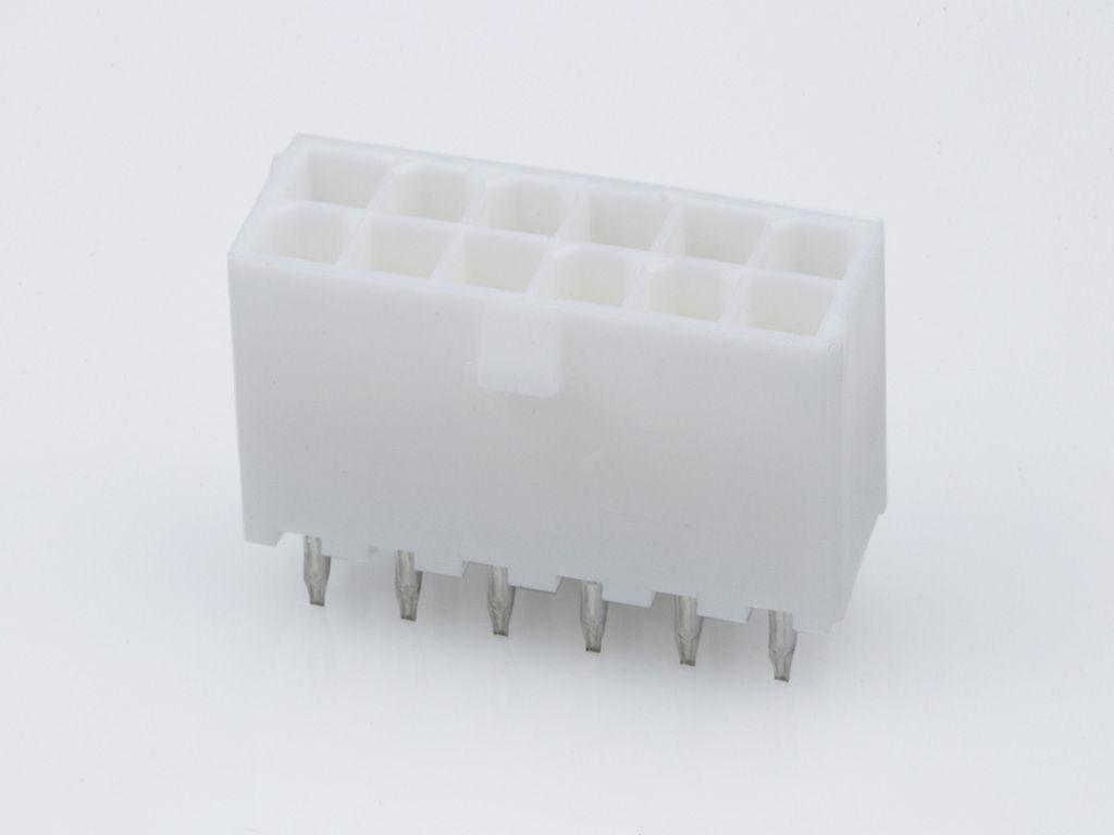 Mini-Fit Jr. Vertical Header, 4.20mm Pitch, Dual Row, 12 Circuits, without Snap-in Plastic Peg PCB Lock, Gold, Natural