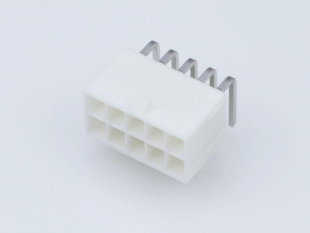 Mini-Fit Jr. Header, Dual Row, Right-Angle, with Snap-in Plastic Peg PCB Lock, 10 Circuits, PA Polyamide Nylon 6/6 94V-0, 2.54µm Matte Tin (Sn) Plating