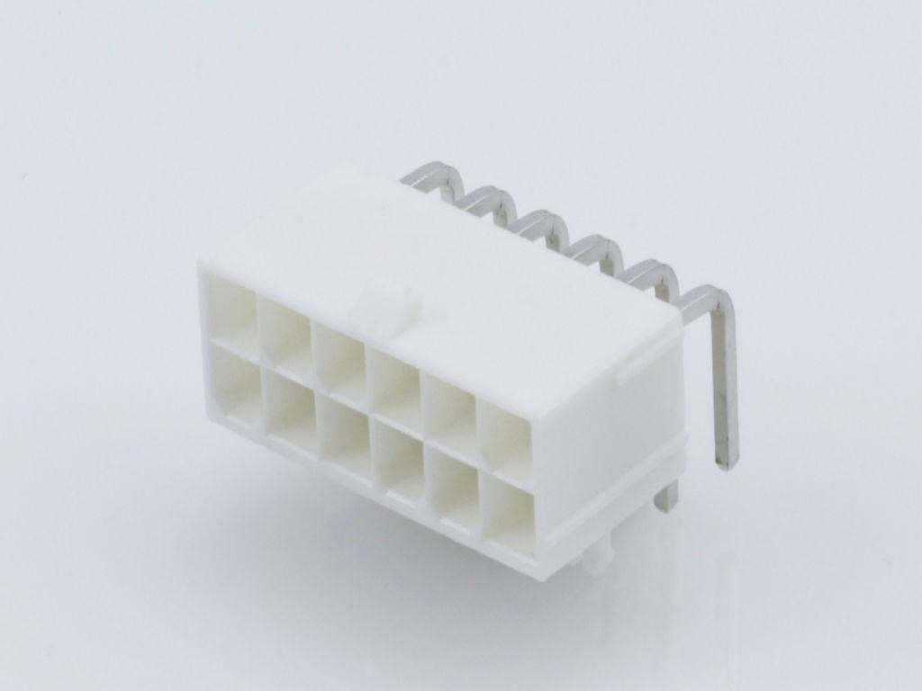 Mini-Fit Jr. Header, Dual Row, Right-Angle, with Snap-in Plastic Peg PCB Lock, 12 Circuits, PA Polyamide Nylon 6/6 94V-0, 2.54µm Matte Tin (Sn) Plating
