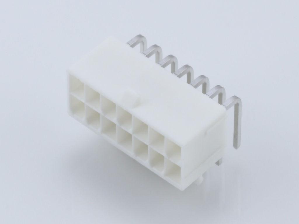 Mini-Fit Jr. Header, Dual Row, Right-Angle, with Snap-in Plastic Peg PCB Lock, 14 Circuits, PA Polyamide Nylon 6/6, 94V-0, 2.54µm Matte Tin (Sn) Plating