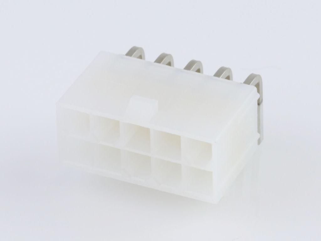 Mini-Fit Jr. Header, Dual Row, Right-Angle, with Snap-in Plastic Peg PCB Lock, 10 Circuits, PA Polyamide Nylon 6/6 94V-2, 0.76µm Select Gold (Au) Plating