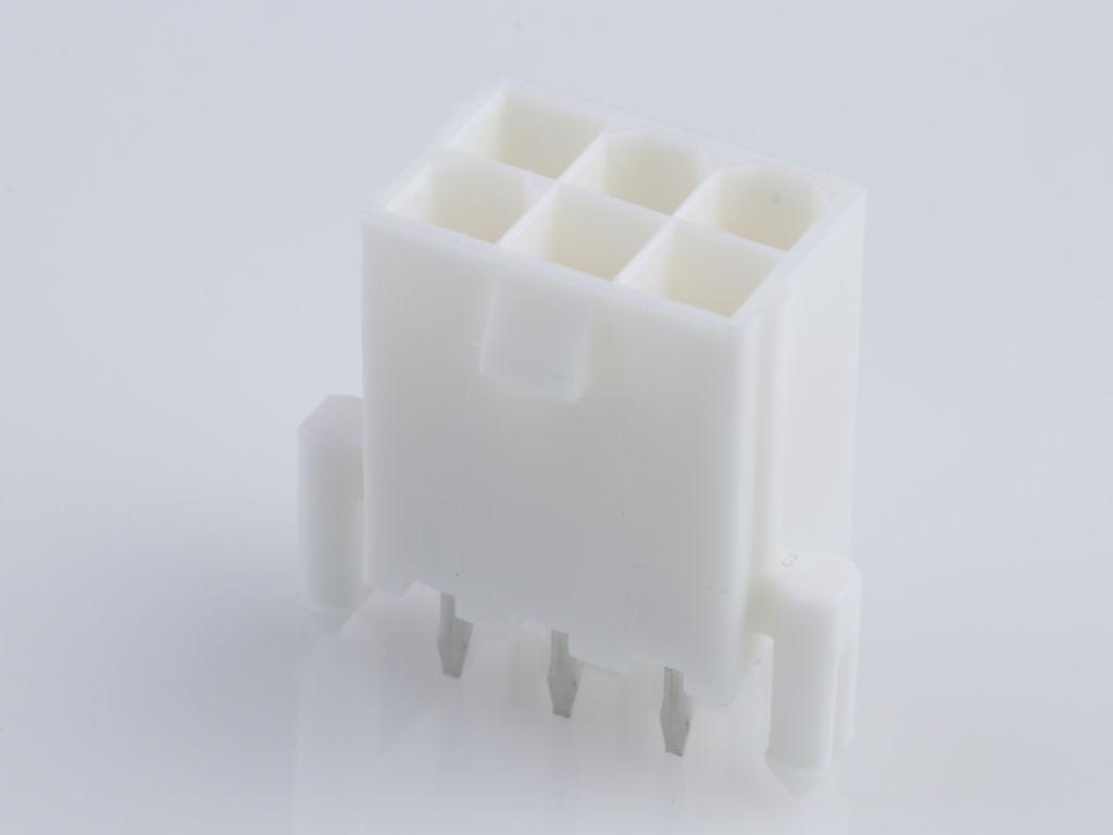 Mini-Fit Jr. Vertical Header, 4.20mm Pitch, Dual Row, 6 Circuits, with Snap-in Plastic Peg PCB Lock, Gold, Natural