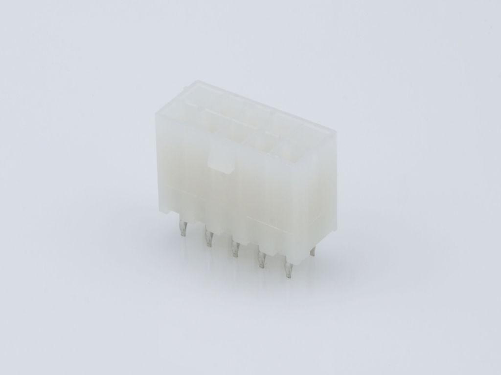 Mini-Fit Jr. Vertical Header, 4.20mm Pitch, Dual Row, 10 Circuits, without Snap-in Plastic Peg PCB Lock, Gold, Natural