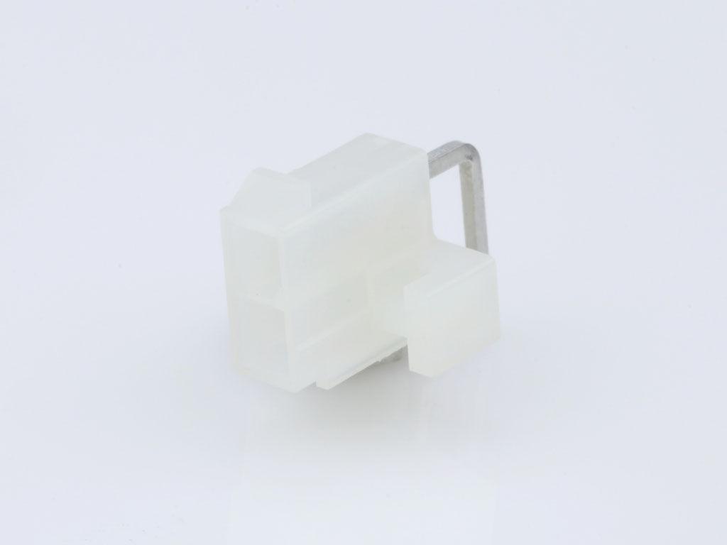 Mini-Fit Jr. Header, Dual Row, Right-Angle, with PCB Mounting Flange, 2 Circuits, PA Polyamide Nylon 6/6 94V-2, Tin (Sn) Plating