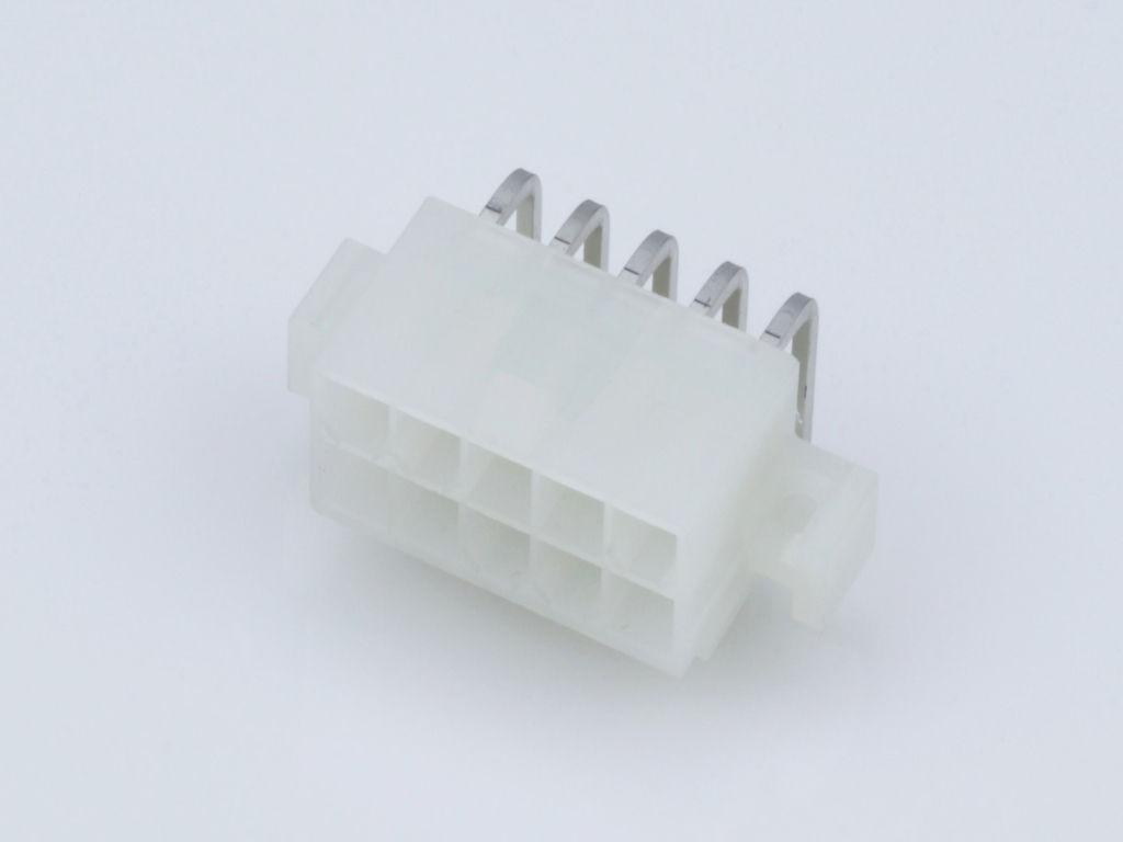 Mini-Fit Jr. Header, Dual Row, Right-Angle, with PCB Mounting Flange, 10 Circuits, PA Polyamide Nylon 6/6 94V-2, Tin (Sn) Plating