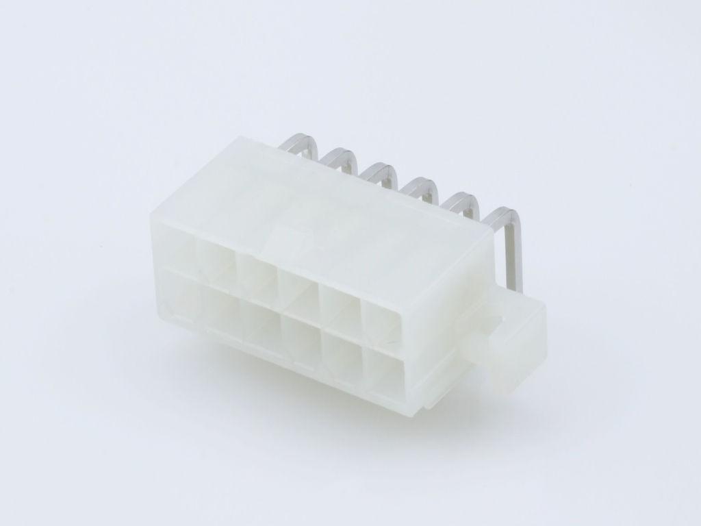 Mini-Fit Jr. Header, Dual Row, Right-Angle, with PCB Mounting Flange, 12 Circuits, PA Polyamide Nylon 6/6 94V-2, Tin (Sn) Plating