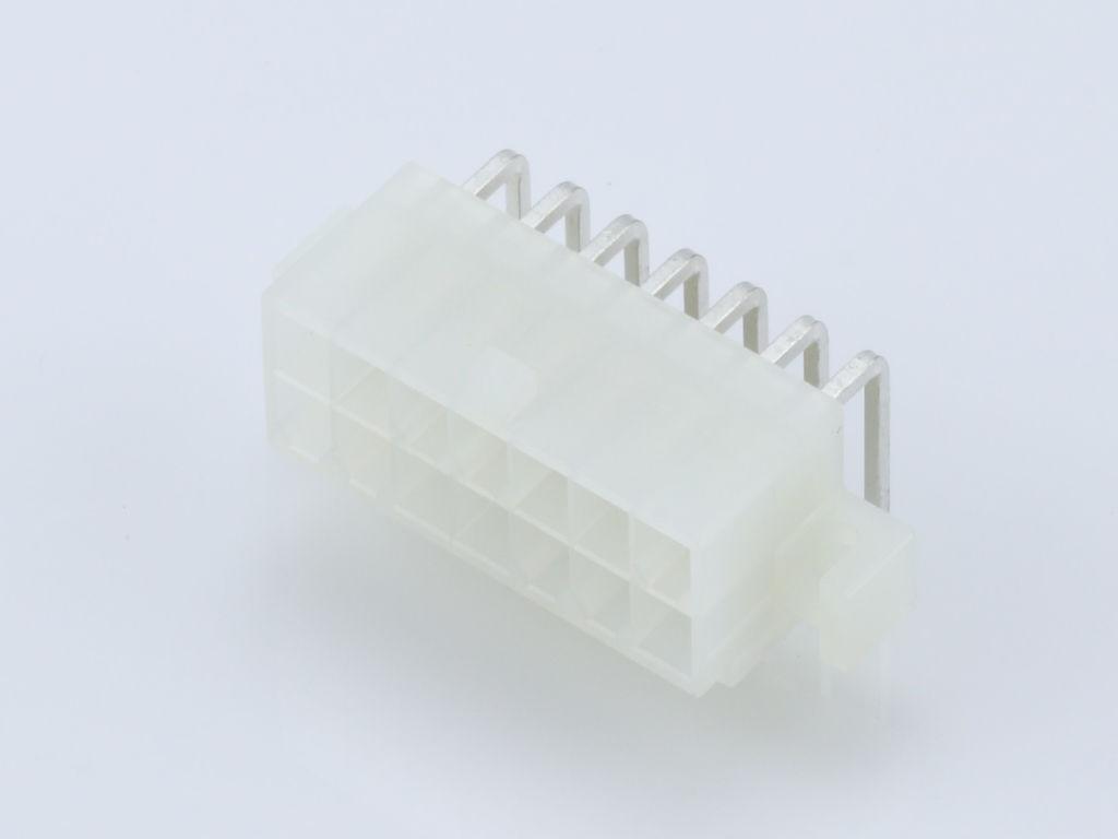 Mini-Fit Jr. Header, Dual Row, Right-Angle, with PCB Mounting Flange, 14 Circuits, PA Polyamide Nylon 6/6 94V-2, Tin (Sn) Plating