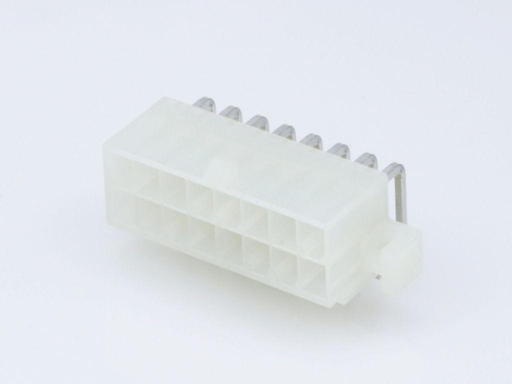 Mini-Fit Jr. Header, Dual Row, Right-Angle, with PCB Mounting Flange, 16 Circuits, PA Polyamide Nylon 6/6 94V-2, Tin (Sn) Plating