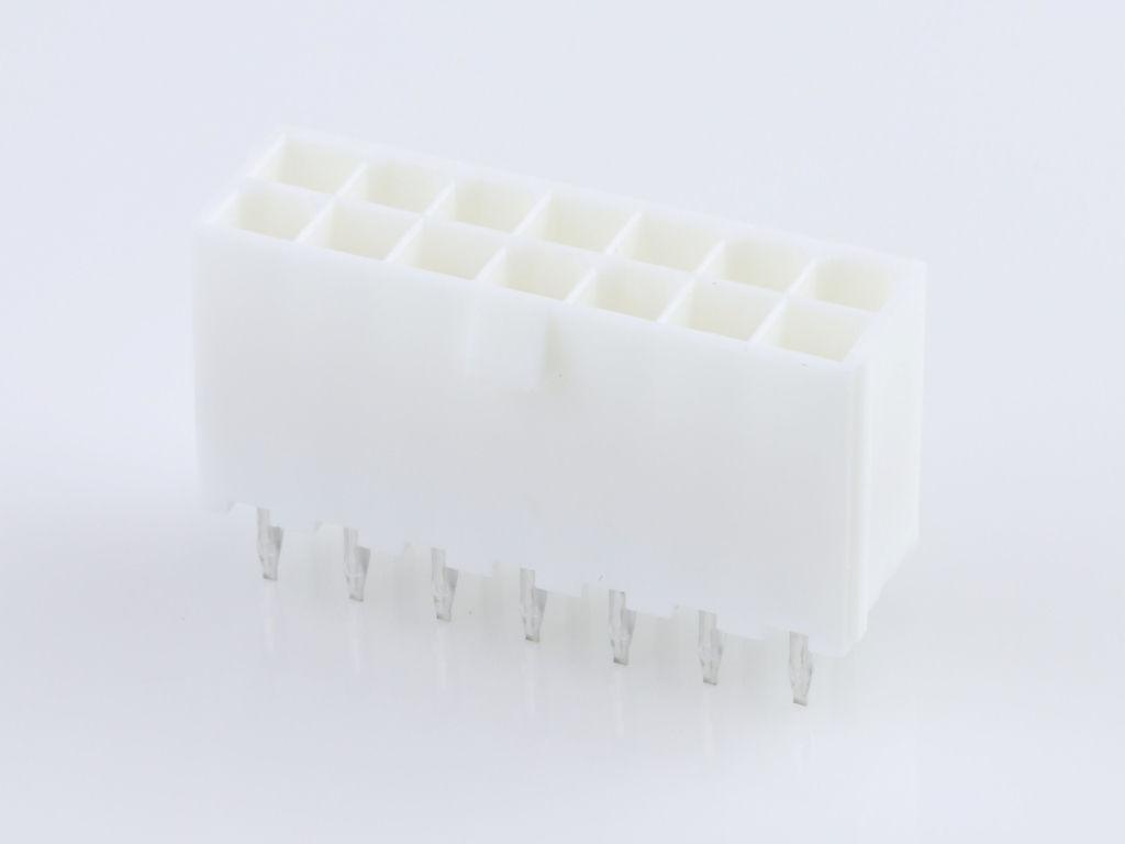 Mini-Fit Jr. Vertical Header, 4.20mm Pitch, Dual Row, 14 Circuits, without Snap-in Plastic Peg PCB Lock, Gold, Natural