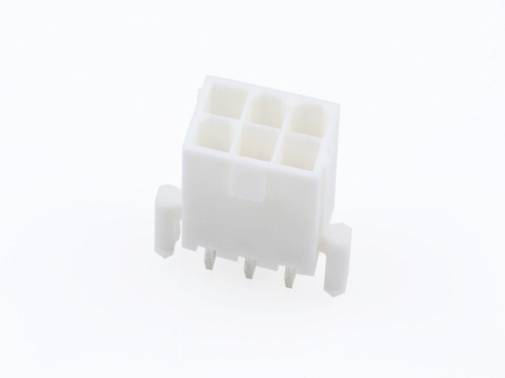 Mini-Fit Jr. Vertical Header, 4.20mm Pitch, Dual Row, 6 Circuits, with Snap-in Plastic Peg PCB Lock, Tin, Natural