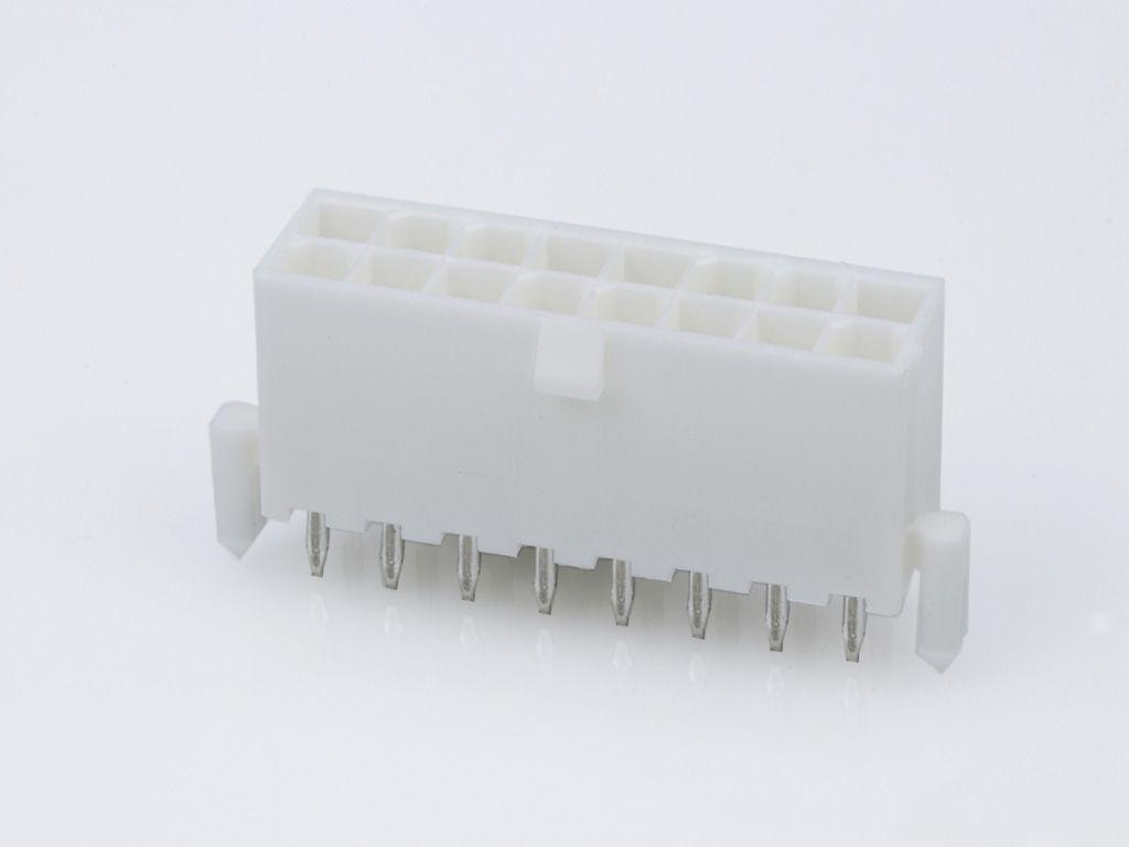 Mini-Fit Jr. Vertical Header, 4.20mm Pitch, Dual Row, 16 Circuits, with Snap-in Plastic Peg PCB Lock, Tin, Natural