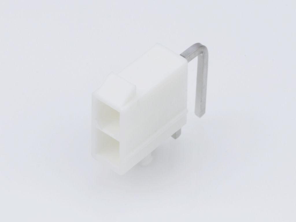 Mini-Fit Jr. Header, Dual Row, Right-Angle, with Snap-in Plastic Peg PCB Lock, 2 Circuits, PA Polyamide Nylon 6/6 94V-0, 2.54µm Matte Tin (Sn) Plating