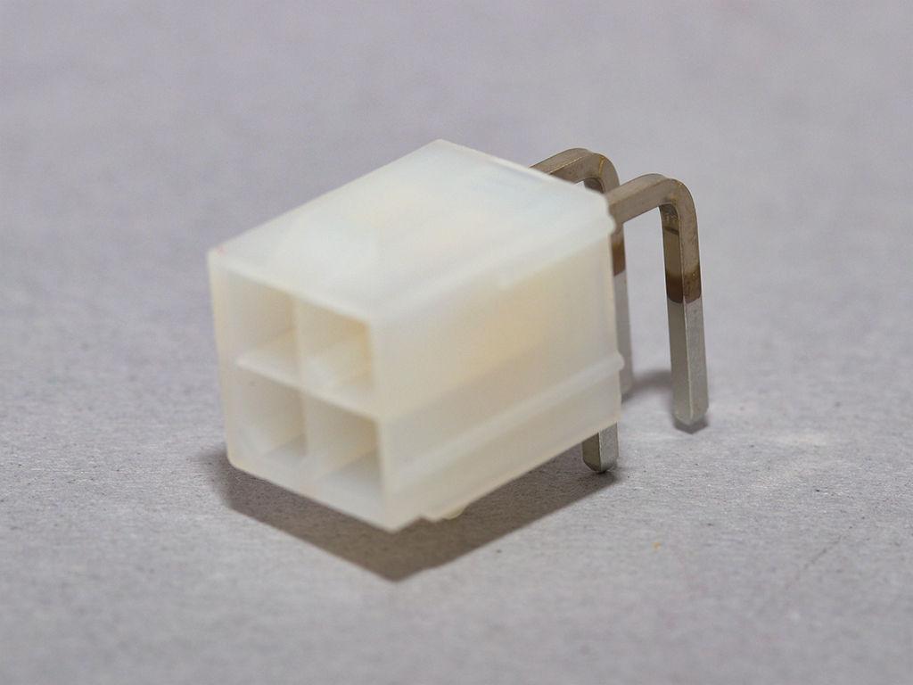 Mini-Fit Jr. Header, Dual Row, Right-Angle, with Snap-in Plastic Peg PCB Lock, 4 Circuits, PA Polyamide Nylon 6/6 94V-2, 0.76µm Select Gold (Au) Plating