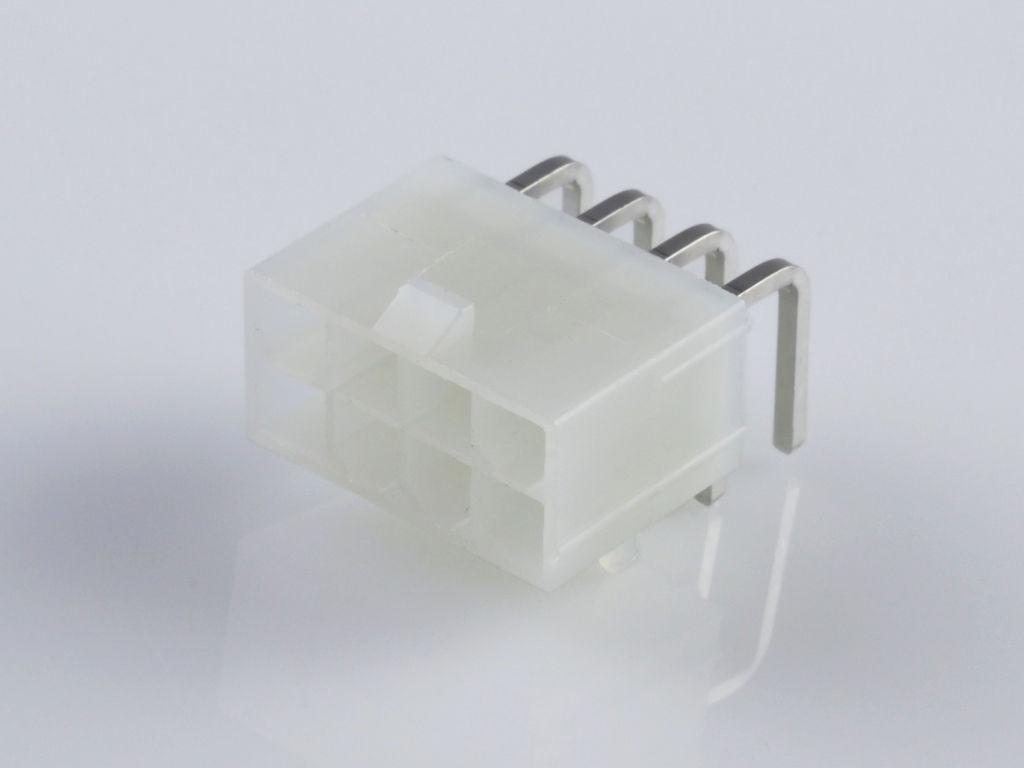 Mini-Fit Jr. Header, Dual Row, Right-Angle, with Snap-in Plastic Peg PCB Lock, 8 Circuits, Nylon 6/6 94V-2, 2.54µm Matte Tin (Sn) Plating, Natural, Bag