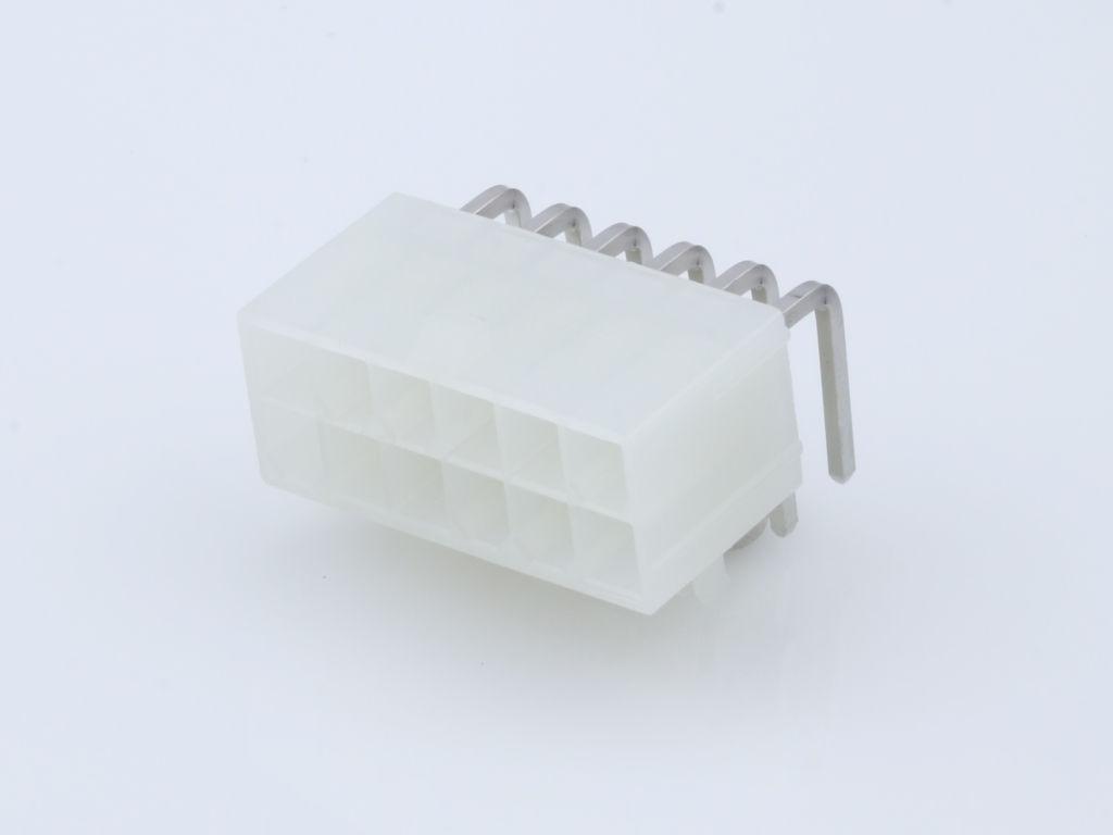 Mini-Fit Jr. Header, Dual Row, Right-Angle, with Snap-in Plastic Peg PCB Lock, 12 Circuits, Nylon 6/6 94V-2, 2.54µm Matte Tin (Sn) Plating, Natural, Bag