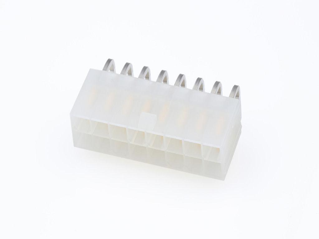 Mini-Fit Jr. Header, Dual Row, Right-Angle, with Snap-in Plastic Peg PCB Lock, 16 Circuits, PA Polyamide Nylon 6/6 94V-2, 0.76µm Select Gold (Au) Plating