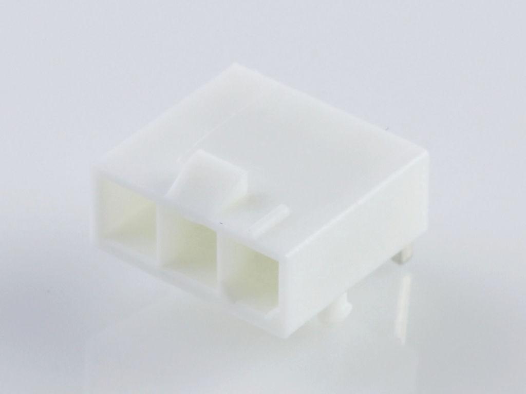 Mini-Fit Jr. Header, Single Row, Right-Angle, with Snap-in Plastic Peg PCB Lock, 3 Circuits, PA Polyamide Nylon 6/6, 94V-0, Tin (Sn) Plating