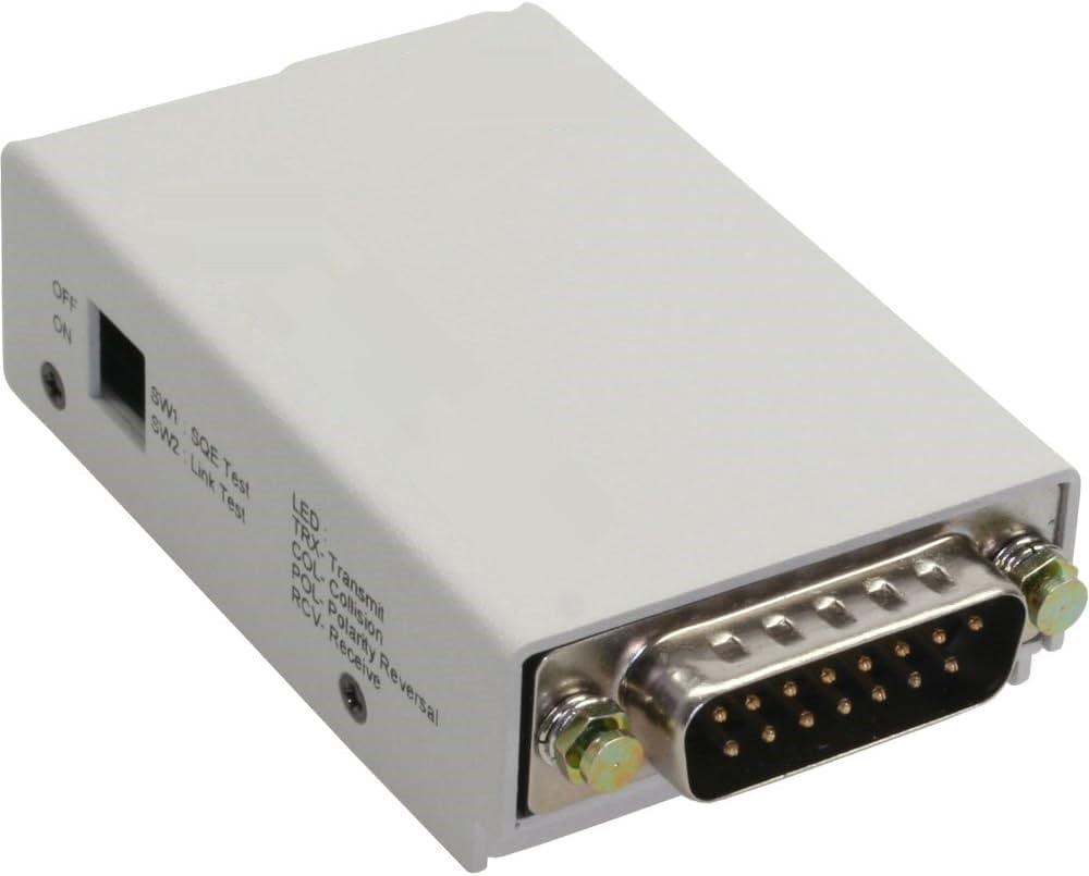 CIX518V2 Mini Transceiver, AUI port with 15-pin male DSUB, with posts for sliding latch, RJ-45 port for Unshielded Twisted Pair,UTP, cable. 10Mbit data rate.